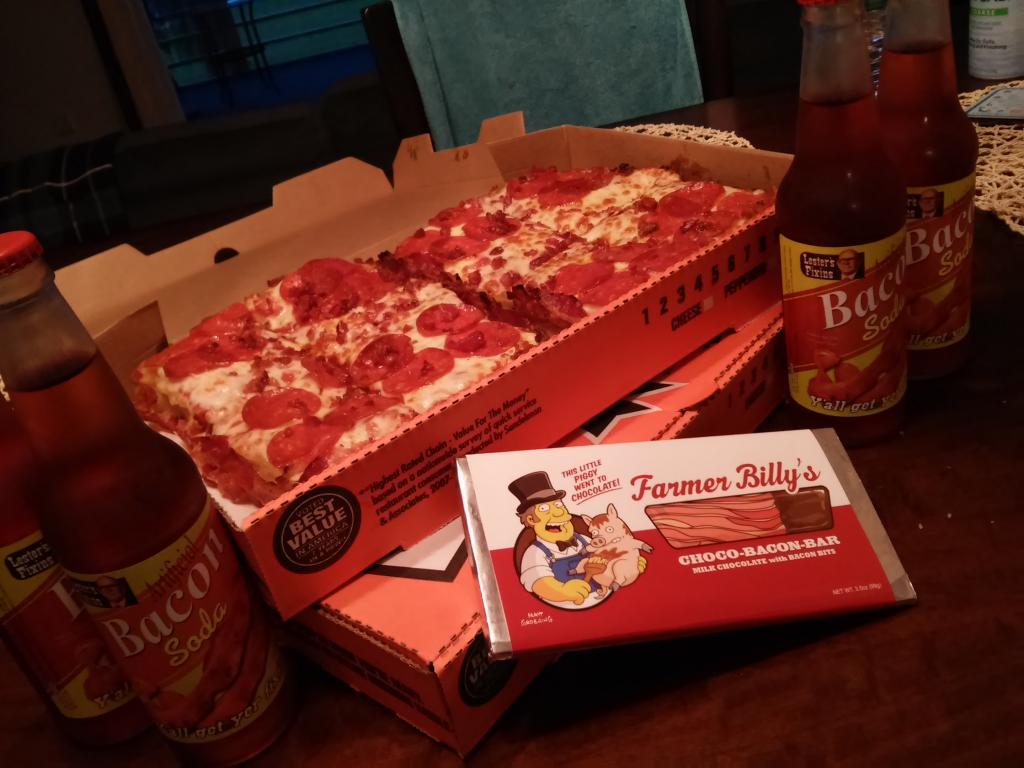 Deep-deep Dish Bacon Crust Pizza, pekonisuklaa ja pekonilimu sai luvan lohduttaa meitä menetyksemme johdosta.