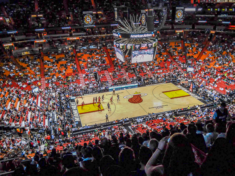 Jenkkifutismatsi päästiin kokemaan television kautta SuperBowlin muodossa, joten oli aika kokea muitakin paikallisia urheilulajeja ja vuorossa oli matka koripallomatsiin. Eikä kyseessä ollut mikä tahansa matsi vaan NBA-matsi, jossa pelasivat Miamin ylpeys Miami Heat vastustajanaan New Orleans Pelicans. Itse ottelu pelattiin Miami Heatin kotiareenalla, American Airlines Arenalla. Areena oli valtava ja katsojia tuonne mahtuu 19600. Ottelu ei ollut aivan loppuunmyyty, mutta siltikin olo oli kuin muurahaisella muurahaispesässä. Meillä oli liput jo pari viikkoa ennen tätä olleeseen otteluun, mutta se jäi väliin myöhästyttyämme siitä. Jälleen, kiitos ruuhkien 🙂 Matsi oli aivan mahtava kokemus ja jos teillä on mahdollisuus niin menkää ihmeessä katsomaan, ette kadu! Ihmisten kannustus omaa jengiään kohtaan oli huumavaa ja kun oli vastustajan vuoro heittää kori niin kaikki katsojat alkoivat buuaamaan yrittäen saada heittäjän hermostumaan. Ja kyllähän tuossa väkisinkin saimme itsemmekin todella hyvään kannustavaan fiilikseen! Yleisöä ei matsissa tosiaankaan oltu unohdettu vaan amerikkalaiseen show-tyyliin pelin väliajat koostuivat tanssitytöistä, liekinheittimistä, dj:n esiintymisestä, katsojakilpailuista ynnä muista tunnelman nostattajista. Ja miten peli päättyi? Paremman jengin voittoon kuten aina, tällä kerralla vastustaja oli parempi. Let´s go Heat 😉