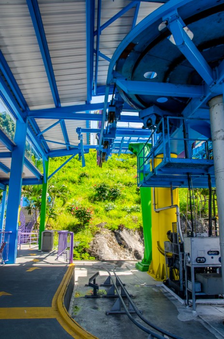 Ensimmäinen saaripysähdyksemme oli St. Thomasilla Charlotte Amalien kaupungissa. St. Thomas kuuluu Yhdysvaltojen Neitsytsaarien saariryhmään. Saari on pieni vain 51 000 asukkaan saari. Tälle saarelle emme olleet valinneet mitään retkeä, vaan päätimme lähteä tutustumaan itse kaupunkiin omin jaloin. Päivä oli todella kuuma ja se teki vain mailin pituisesta matkasta Downtowniin ja takaisin laivalle todella uuvuttavan. Varsin mukava ja kaunis pieni kaupunki pastellinvärisine taloineen ja palmuineen. Kävimme laivasataman vieressä olevalla näköalakukkulalla, jonka huipulle mentiin riippuhissillä. Upeat näkymät! M kiinnitti matkalla huomionsa paikalliseen liikenteeseen, joka oli varsin erikoinen. Saarella oli brittityylinen vasemmanpuoleinen liikenne, mutta autoissa oli silti ns normaalilla eli vasemmalla puolella ratti, erikoista.
